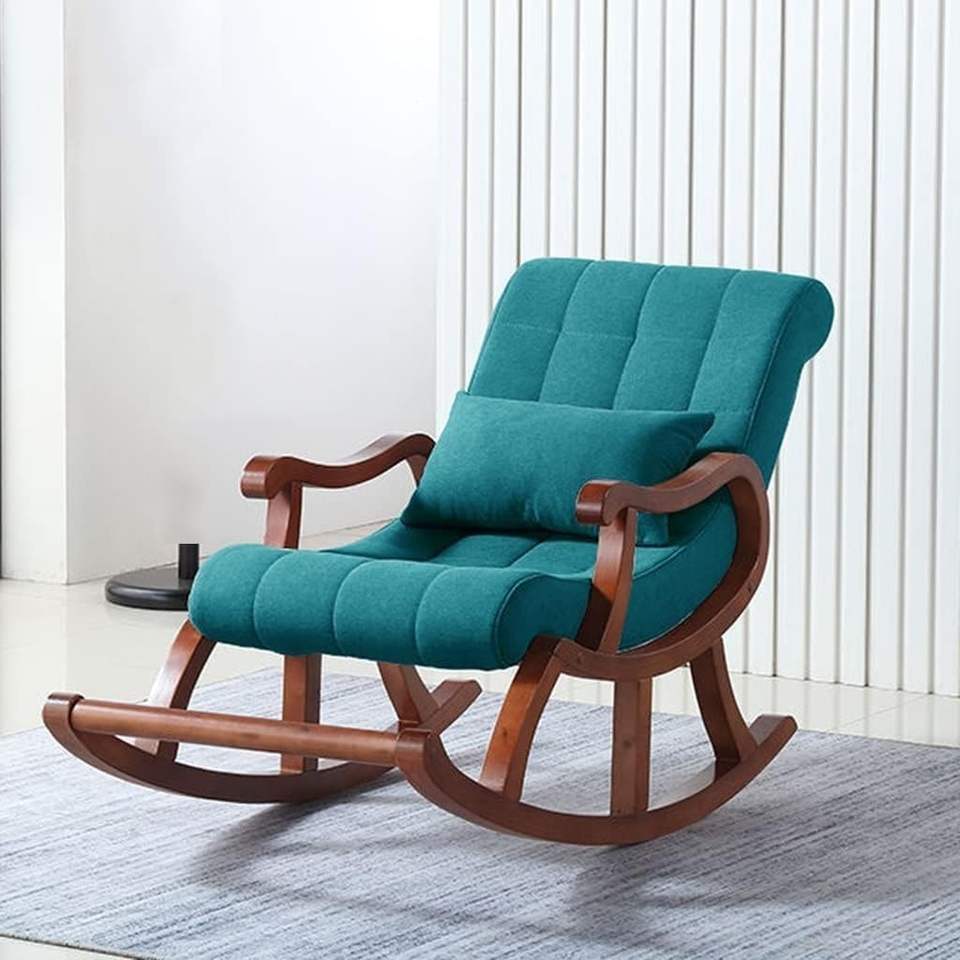 Sheesham Wood Rocking Chair – Handcrafted Solid Wood Armrest Rocker with Cushioned Seat & Back, Pillow Included, Lounge Chair