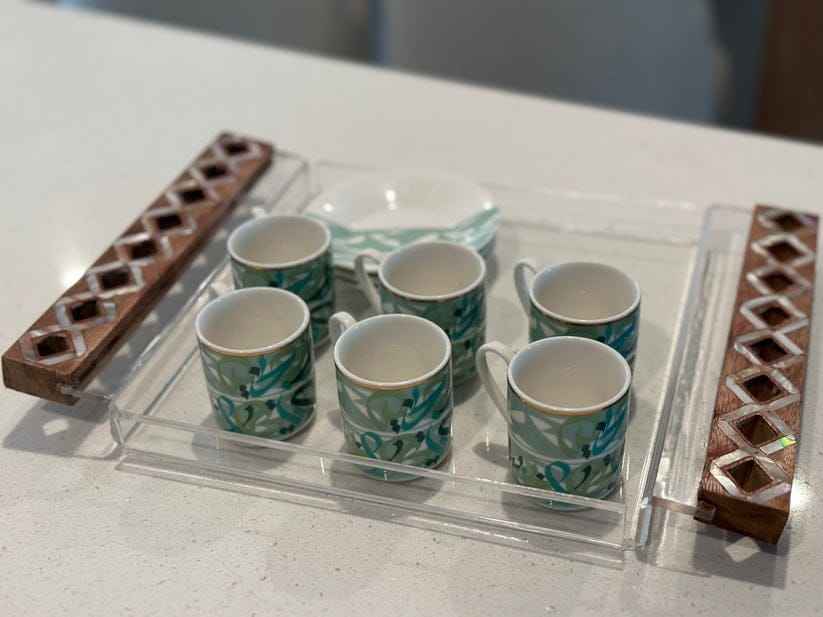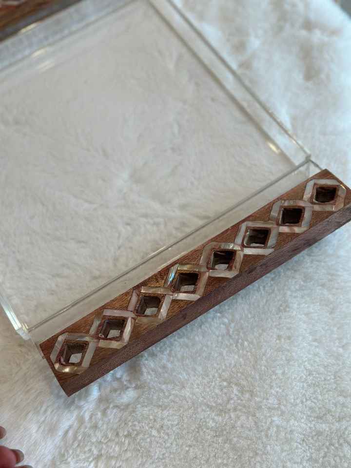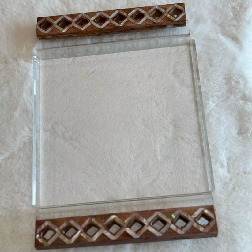 Sheherazade Collection Industrial Wooden Tray with Mother of Pearl Shell Decor for Diwali & Ramadan