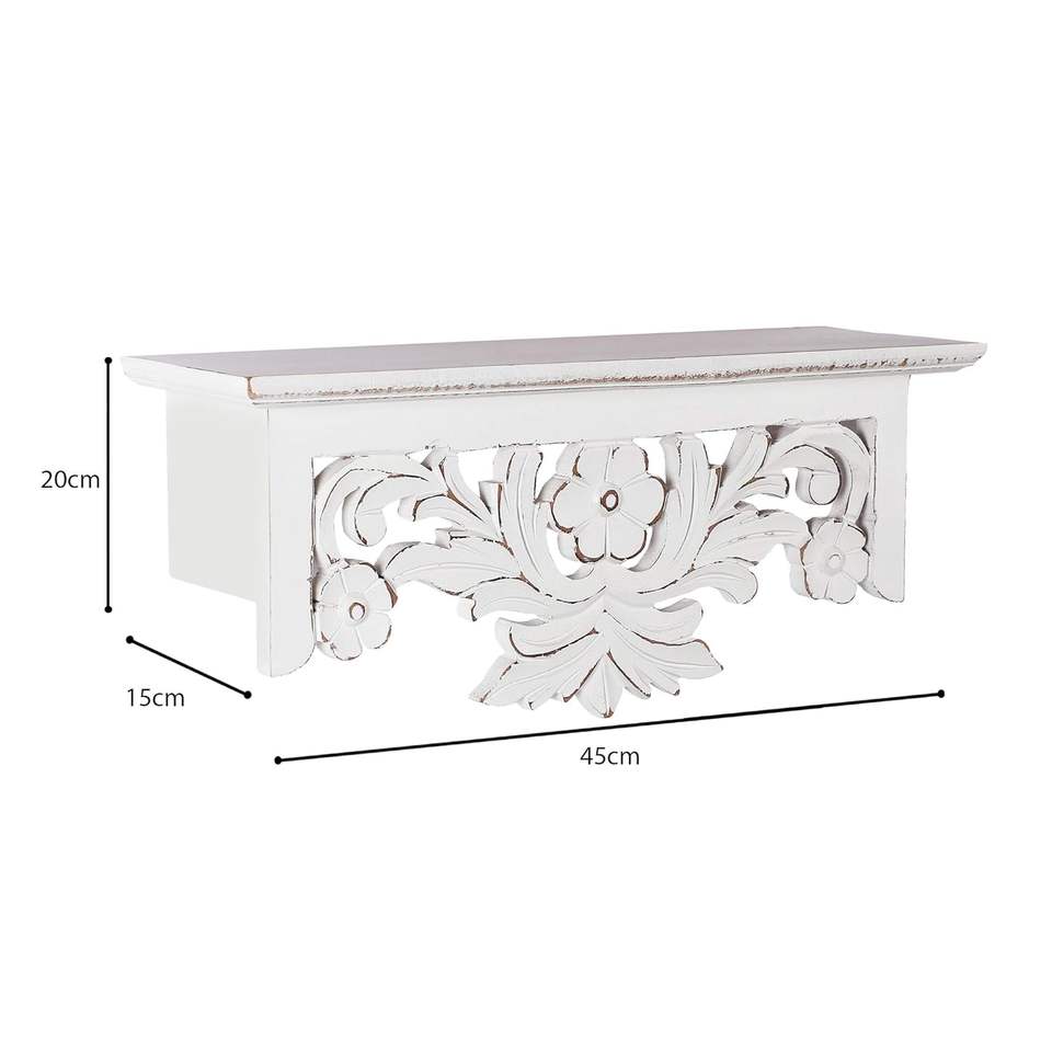 Shelf Wooden Wall Mounted Distressed White Color 45 x 15 X 20 CM Pack of One French Country Style Elegantly Floral Hand Crafted