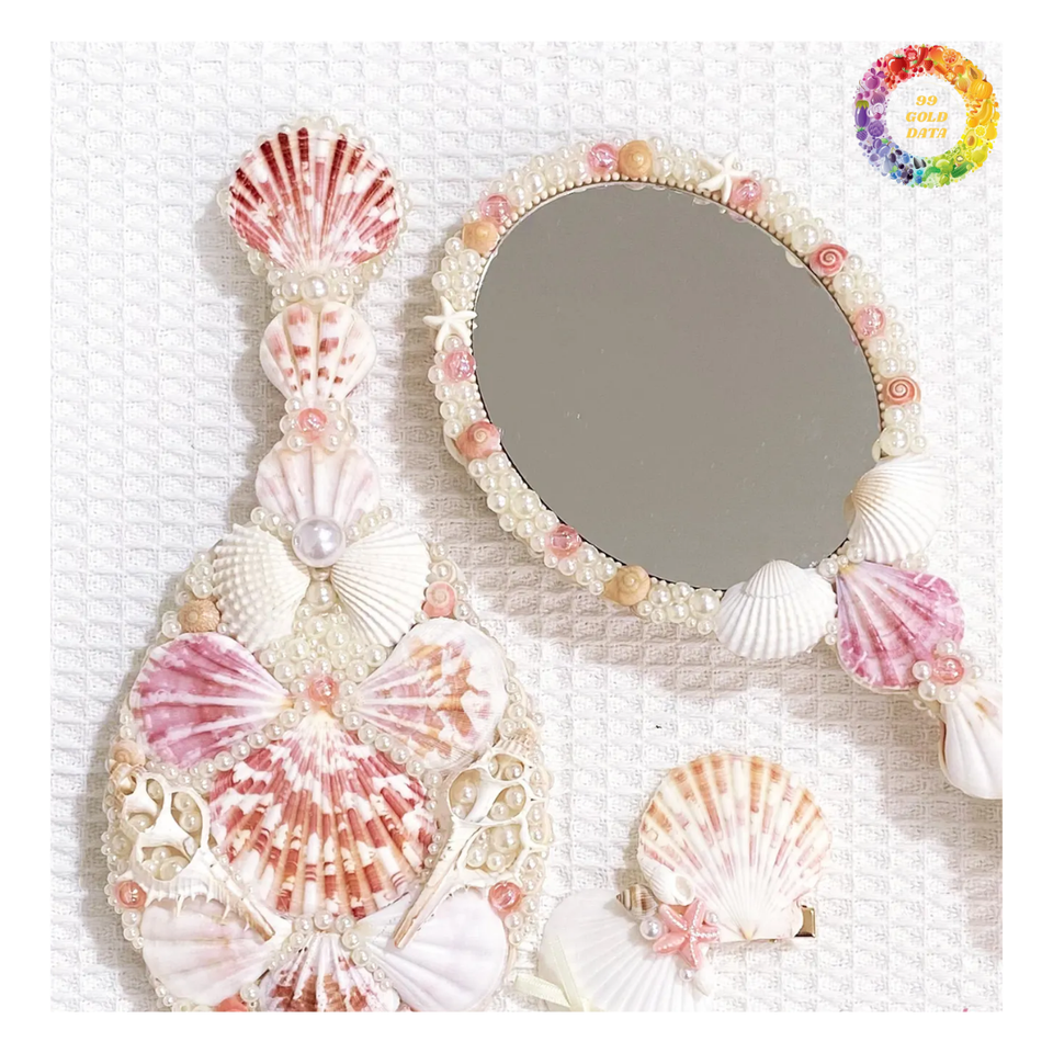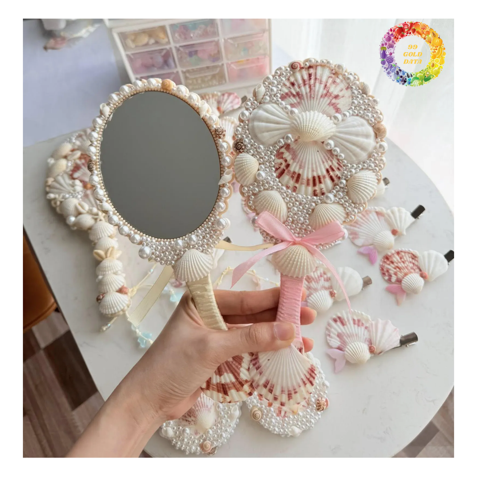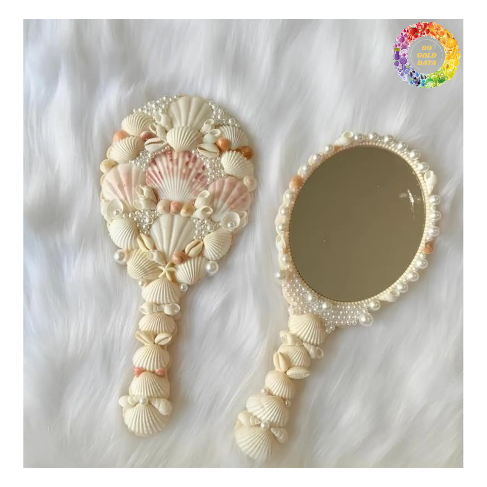 Shell Makeup Mirror, Beautiful Compact Mirror with Nautical Style Shells, Elegant Pearl Touch for Mermaid-core Accessories Gifts