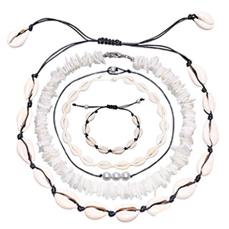 Shell Necklace Set With Pearl And Crushed Shell Women's Fashion Jewelry Gift Set For Beach Style Accessory