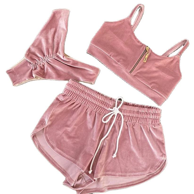 Shemax 2023 Top Quality Hot Selling Custom Wholesale Pole Dance Top & Bottom Set Velour Twerk Outfit with Shorts Zippered Top