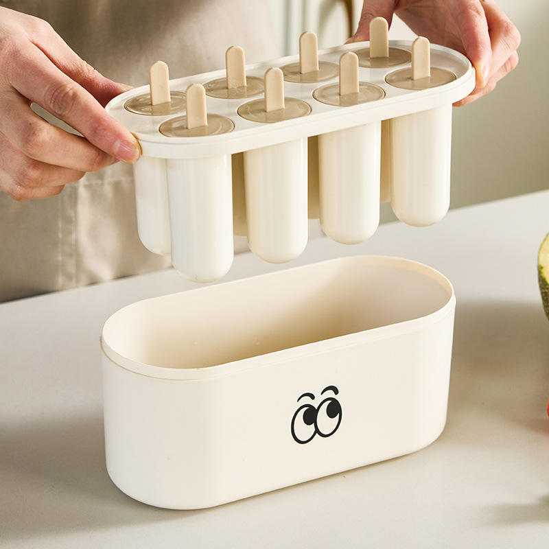 Shengleju Ice Cream Mold Plastic Square 6 Round 8 Popsicle Molds Food Grade Household Use Beige