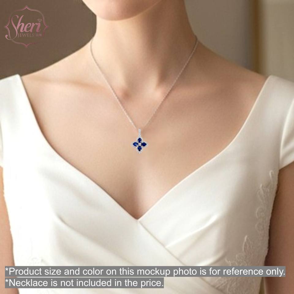 Sheri Jewels Women's 18K Solid White Gold Romantic Natural Blue Sapphire Diamond F-G Color SI1-2 Clarity Memorial Pendant