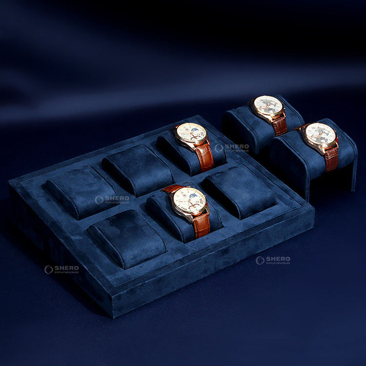 Shero Brand Customize Wholesale Suede Covering Blue Jewelry Watch Display With Pillow