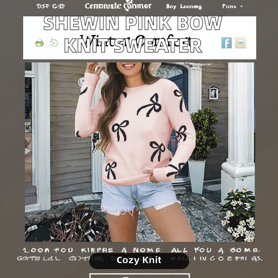 Shewin Casual Winter Knitted Wool/Viscose Breathable Loose Pink Bow Sweater Wholesale Crew Neck Drop Shoulder Design