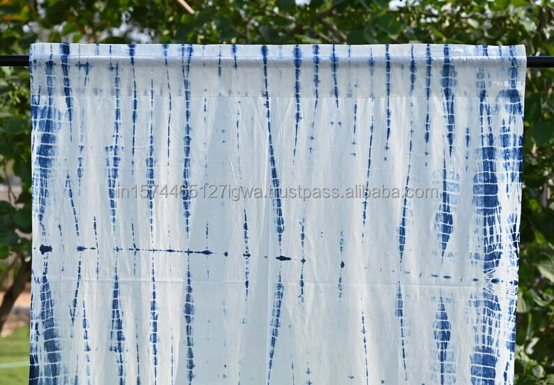 Shibori Tie-Dye Cotton Curtain Panels Set of 2 Indigo Blue for Bedroom & Living Room