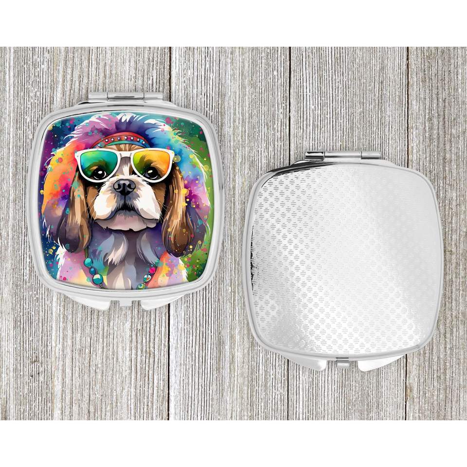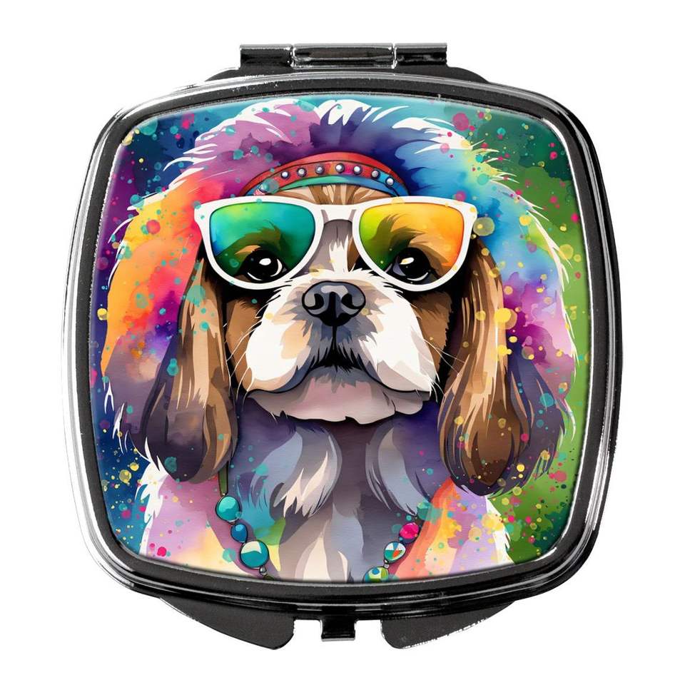Shih Tzu Hippie Dawg Compact Folding Handheld Makeup Mirror Portable Decorative Travel Gift for Women and Girls