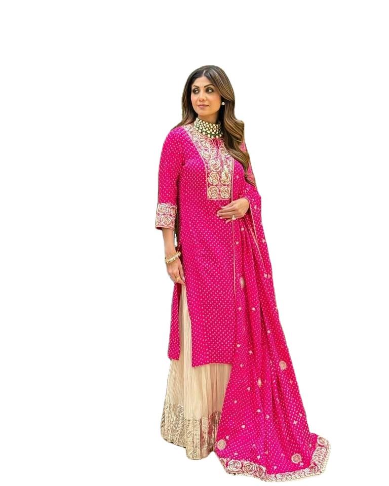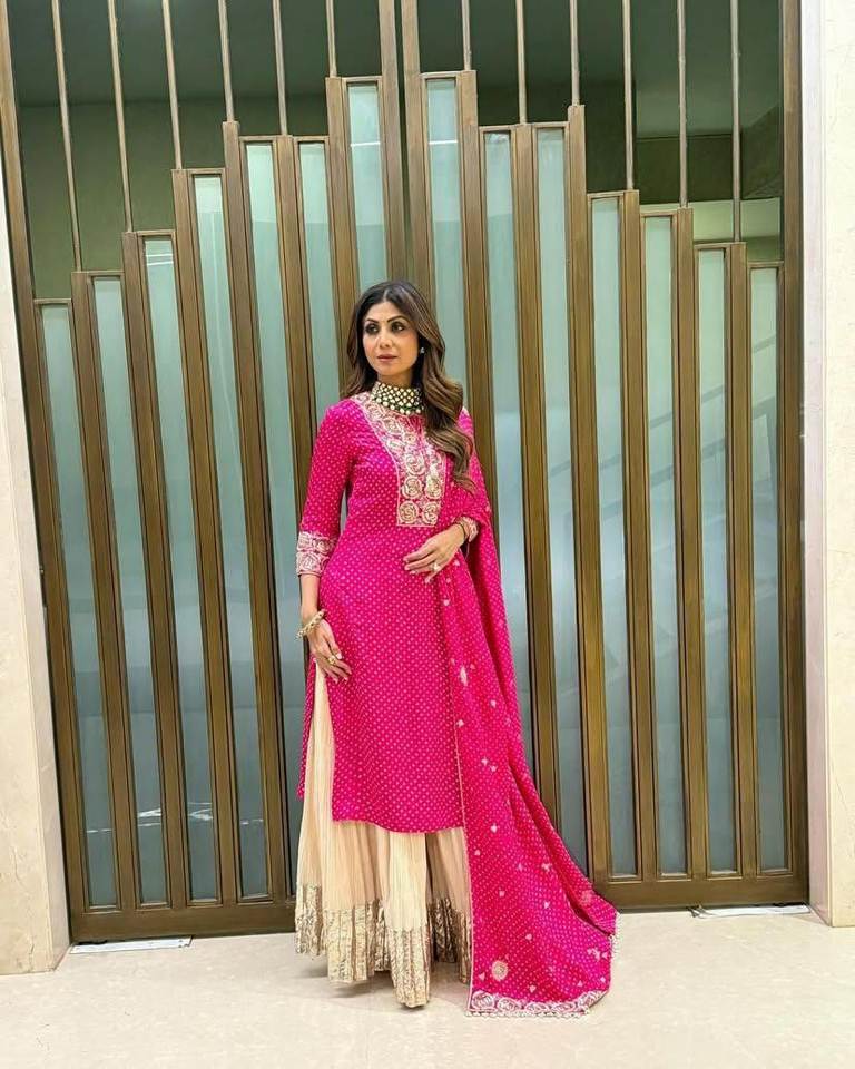 Shilpa Shetty Bollywood Actress Wear Embroidery Coding Sequence Work With Printed Gorgeous Color Designer Salwar Suit for Sale