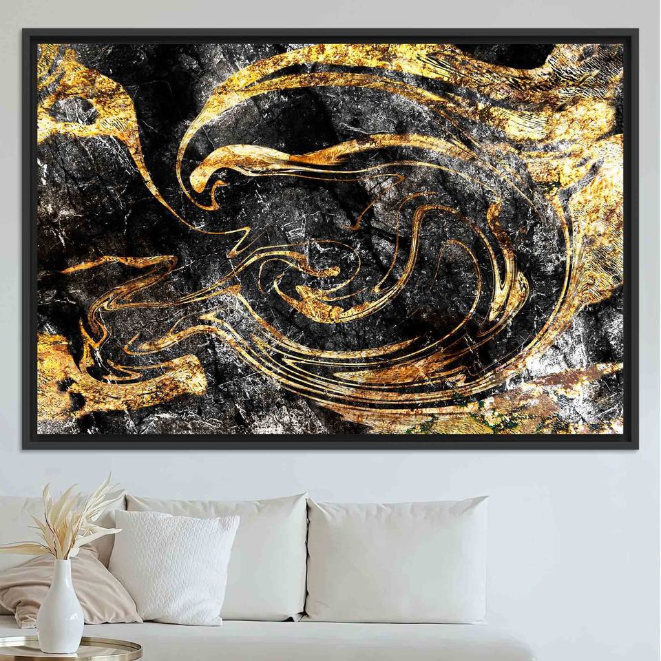 Shimmery Gold Marble Print: Elegant Alcohol Ink Canvas Artwork,BLACK FRAMED CANVAS