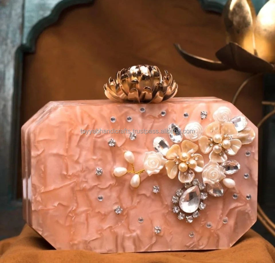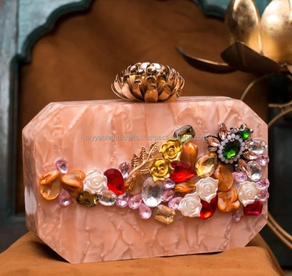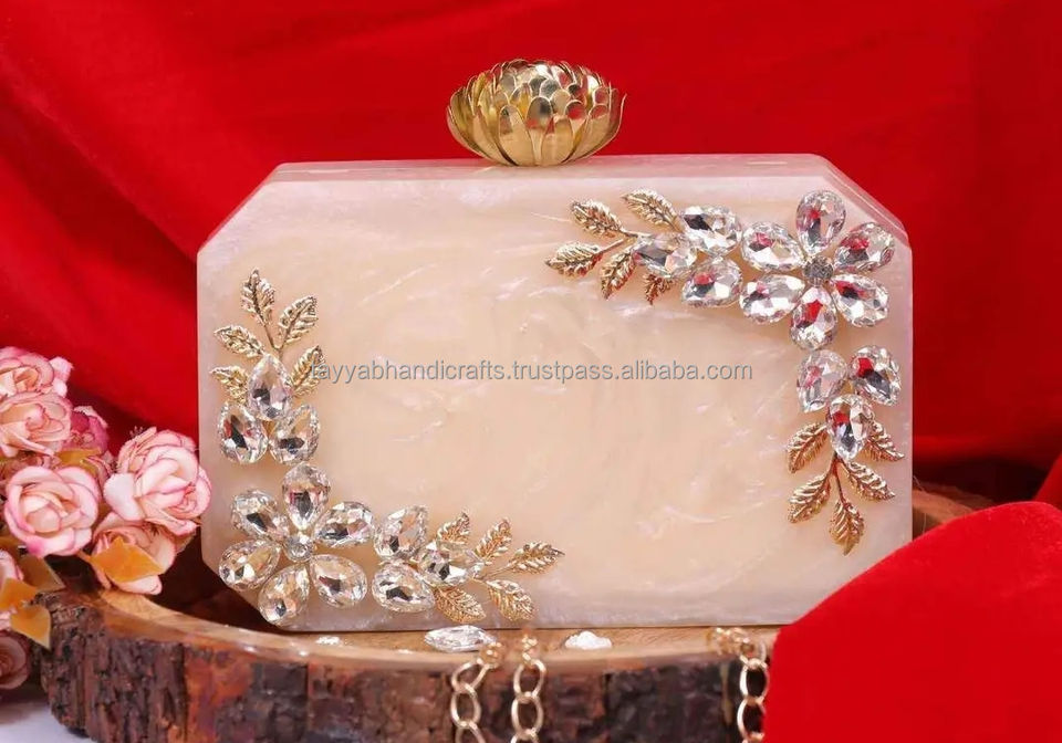 Shine White Resin Clutch Purse Enhance Your Style With This Trendy and Elegant Accessory by Tayyab Handicraft