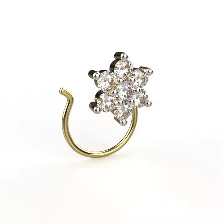 Shining Star Jewelry's Yellow Gold Certified Allure Nose Pin Lab Grown Diamonds Pretty Flower Shape Moissanite Jewelry for