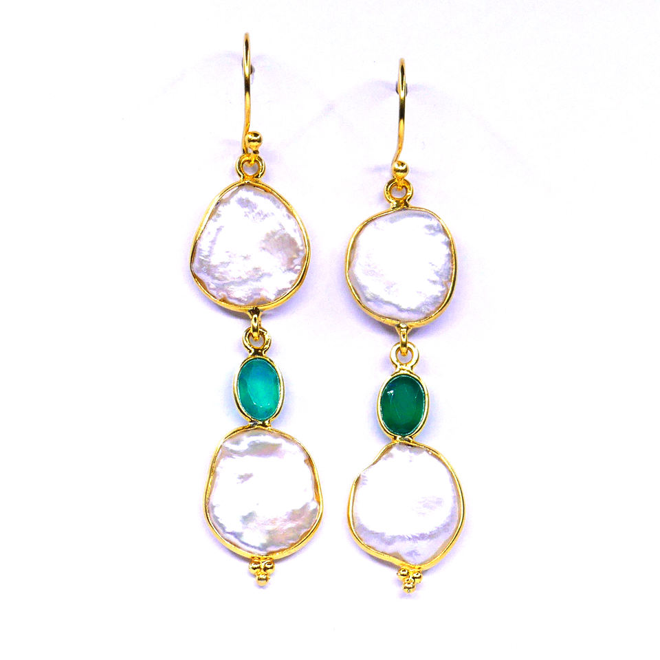 Shining Sterling Silver 925 Baroque Pearl Green Onyx Gemstones Wholesale Wedding Women Wear Earring Set