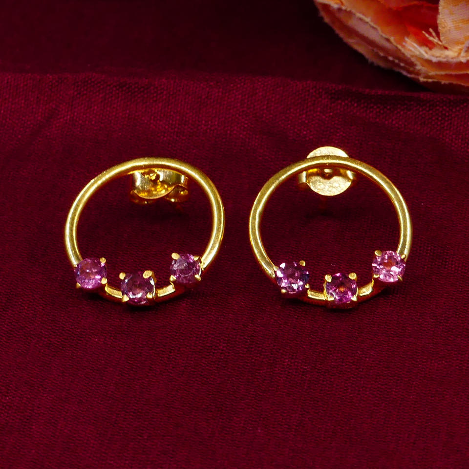 Shining Sterling Silver 925 Gold Plated Tourmaline Gemstones Affordable Classic Women Wear Hoop Earring Set