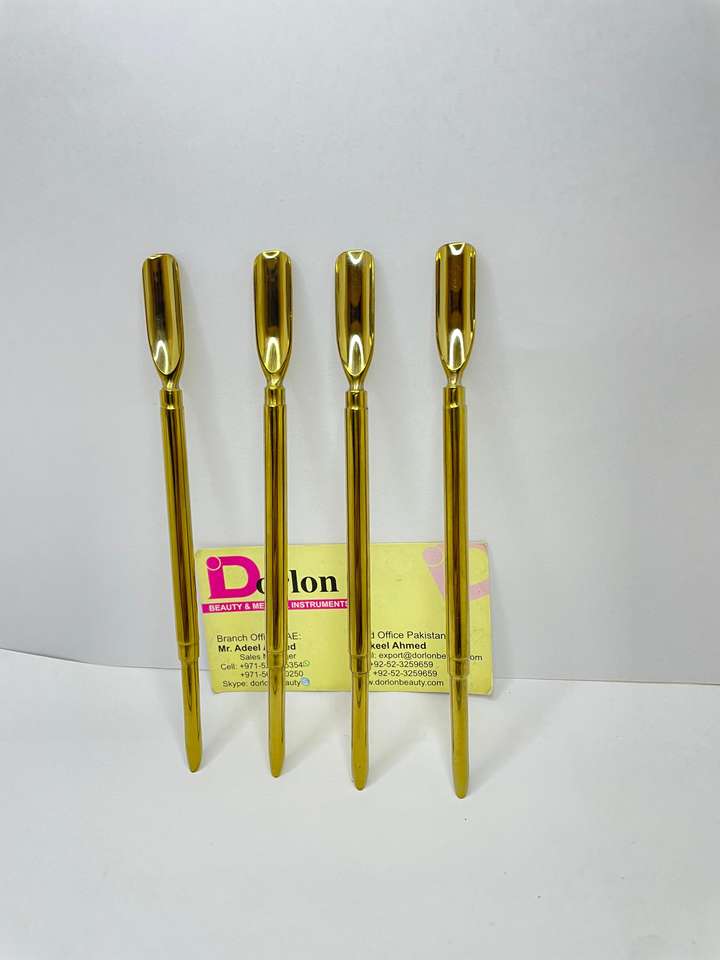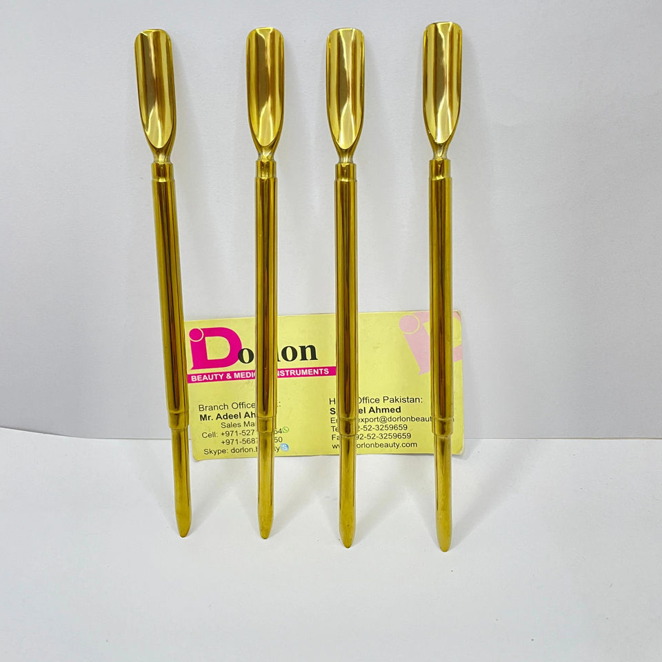 Shinny Gold Plasma Cuticle Pusher Custom Logo Stainless Steel Manicure Pusher Spoon Shaped Double Ended Nail Cleaner Pusher