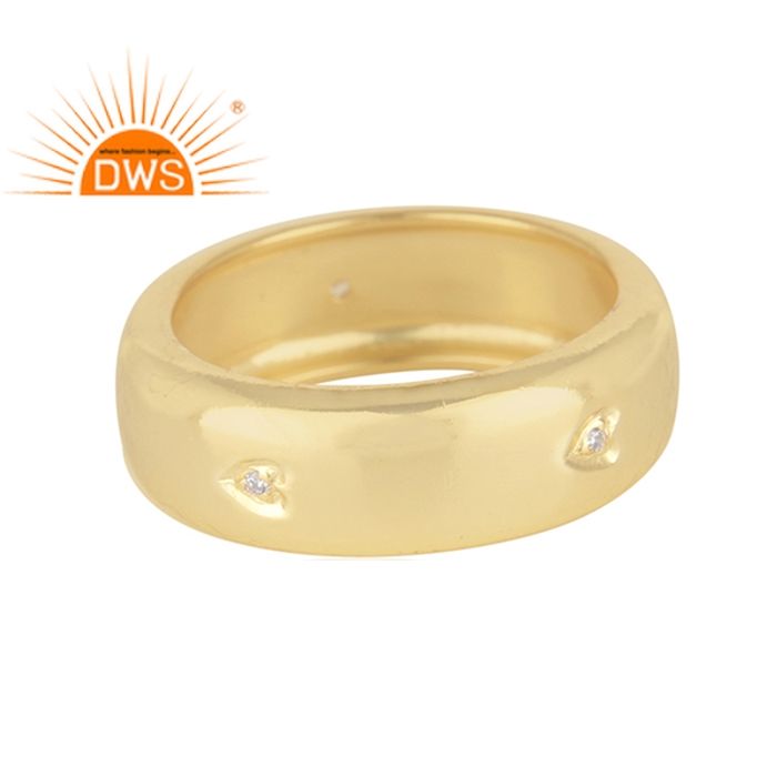 Shiny 14k Gold Plated Brass Eternity Band Ring Cute White Zircon Set Ring Fashion Jewelry Manufacturer