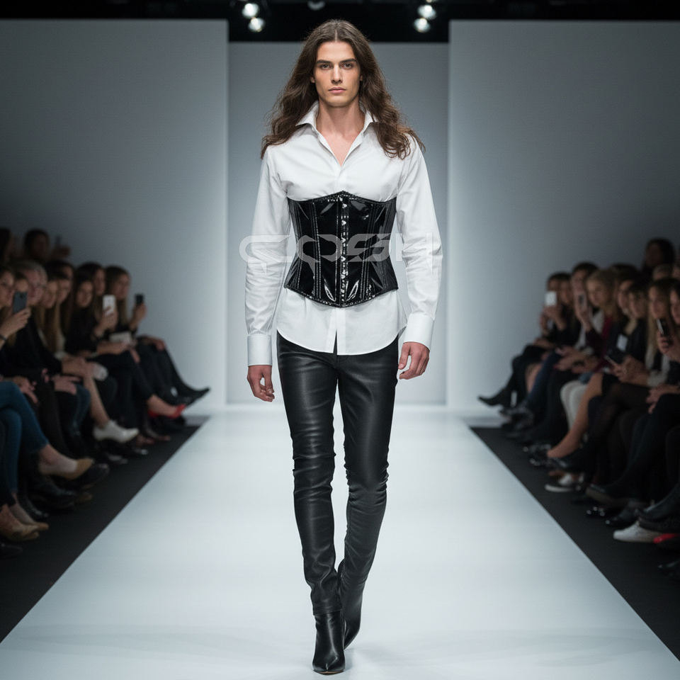 Shiny Black Vinyl PVC Underbust Steel Boned Waist Shaping Corset With Front Busk Closure