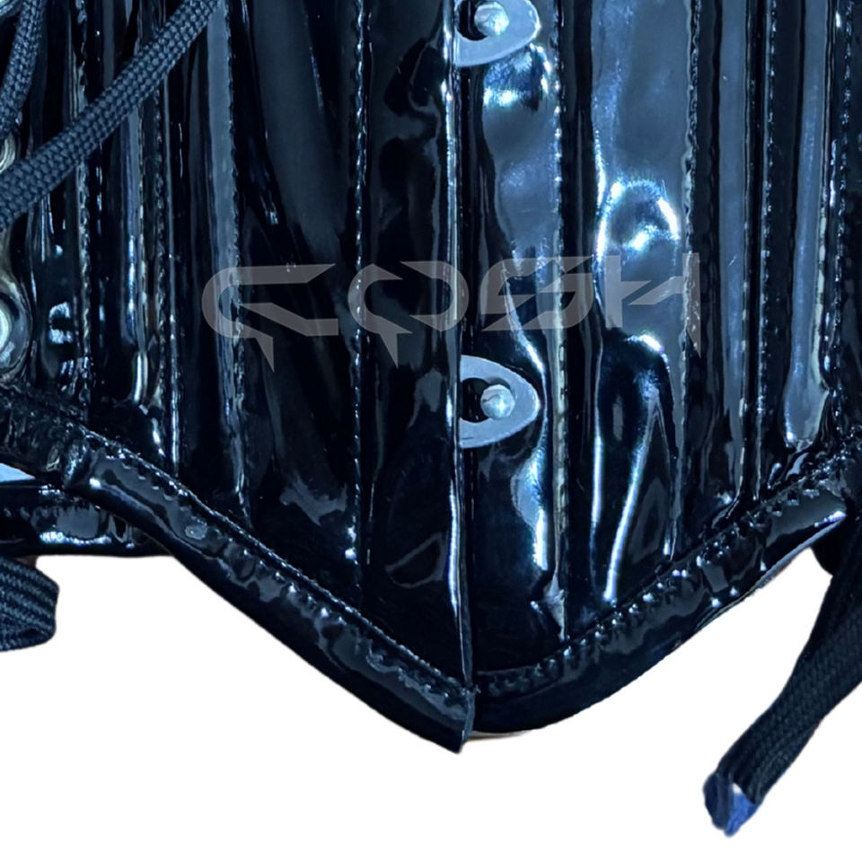 Shiny Black Wet Look PVC Overbust Steel Boned Corset With Full Lace-Up Design Waist Training Fashion Corsets