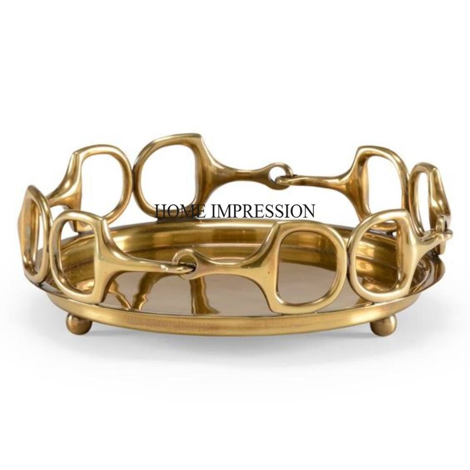 Shiny Look High Grade Gold Plated Heavy Duty Metal Dry Fruits And Sweets Serving Tray From Indian Supplier In Impressive Price