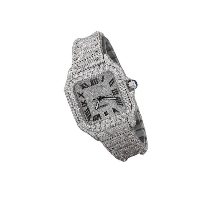 Shiny Men's Luxury Mechanical Watch Premium Diamond Setting Elegant Roman Numeral Dial Stainless Steel Square Crystal Case