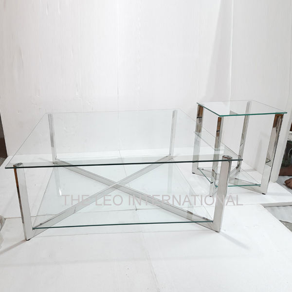 Shiny Polished Square Shape Design Stainless Steel Clear Glass Material Coffee Nesting Table Italian Table