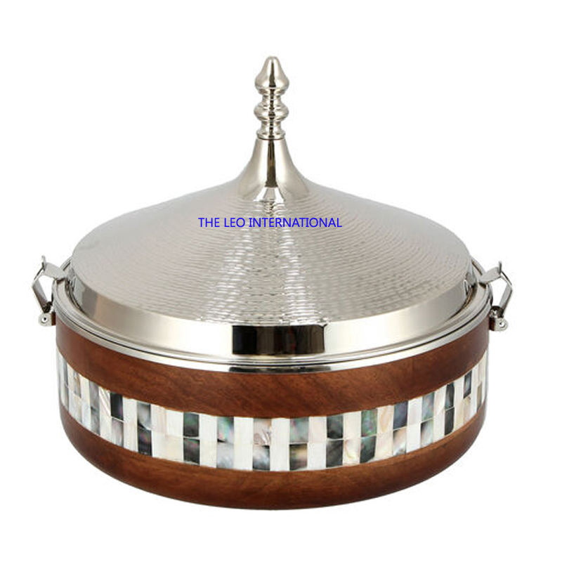 Shiny Polished With Lid Flower Shape Design Round Decorative Bowl Aluminum Wood Material Luxury Unique Bowl