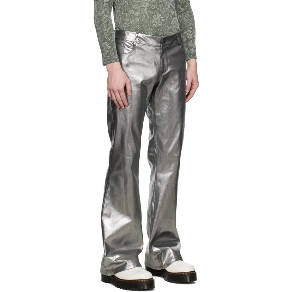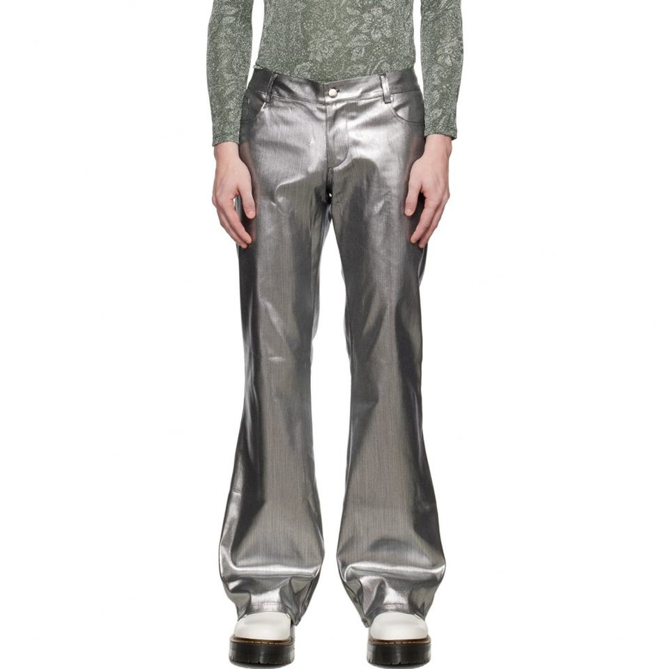 Shiny Puddle Flare Pants for Men Coated Waterproof & Breathable Solid Pattern for Jeans