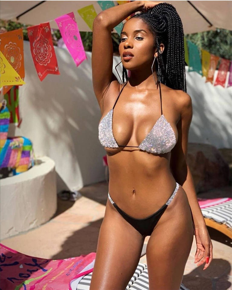 Shiny Rhinestones Bikini Set Halter Diamante Bra Sexy Thong Panty Bathing Suits Summer Beach Swimwear