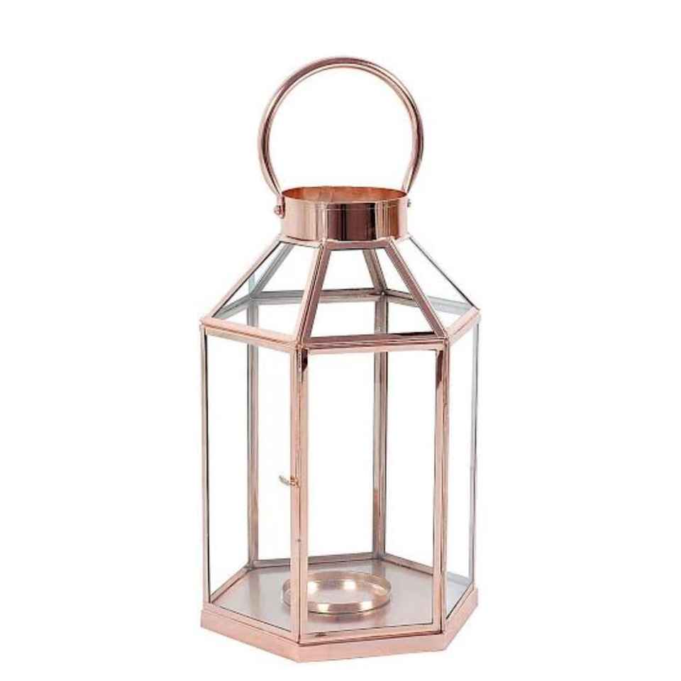 Shiny Rose Gold Plated Iron Square Lantern Christmas Home Decor Handmade Customizable Fancy Candle Lantern