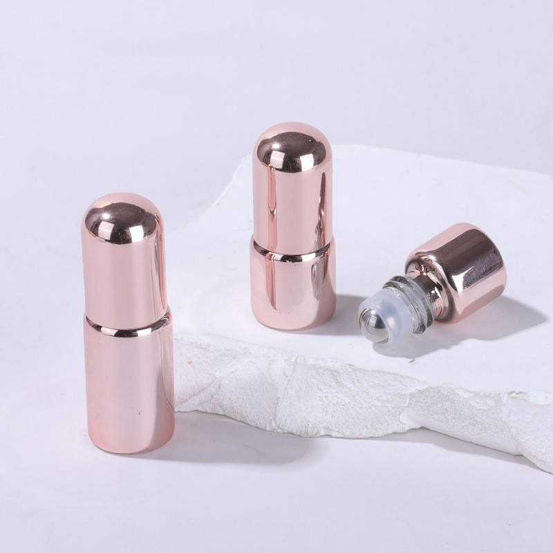 Shiny Rose Gold Roll on Bottles 1ml 2ml 3ml 5ml Empty Plated Pink Glass Perfume Deodorant Roller Bottles With Roller Ball
