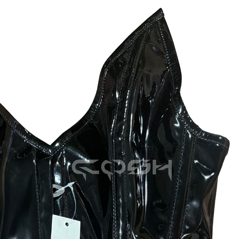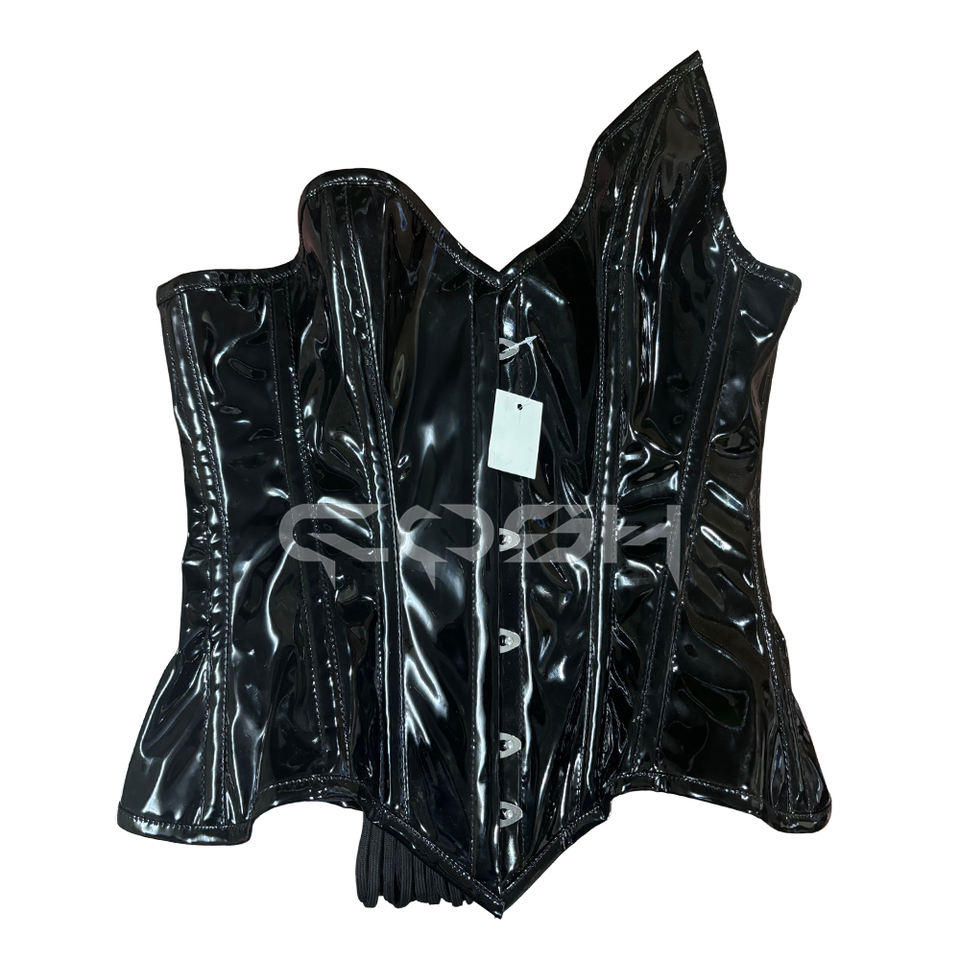 Shiny Wet Look Black PVC Overbust Corset Heavy Duty Steel Boned Body Shaper Waist Slimming Corset