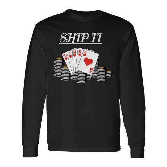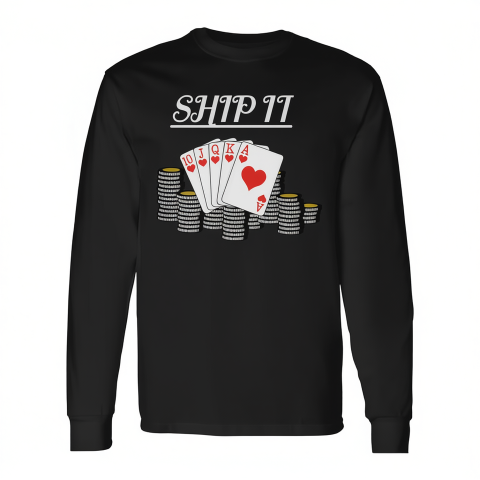 Ship It Poker Long Sleeve T-Shirt Royal Flush Heart Cards Chips Design