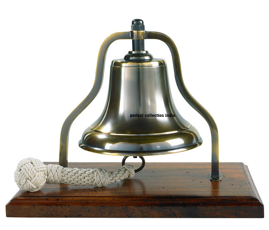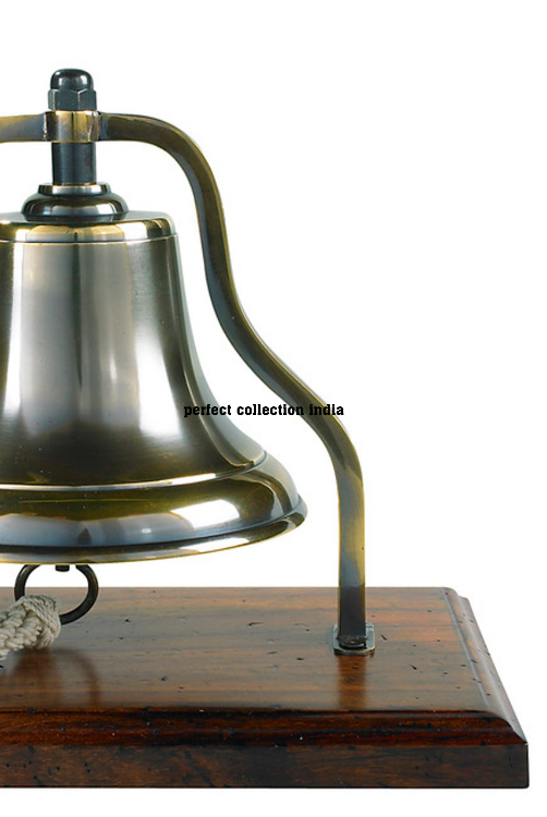 Ship's Purser's Bell Brass 9.5" Bronzed Finish Tabletop Wood Stand Brass Antique Ship Bell on Wood Base Standing Bell for Office
