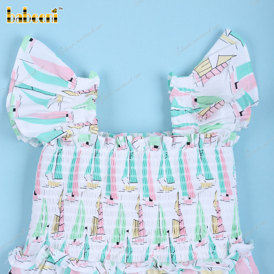 OEM ODM Bubble Sailboat Shirred Dress Baby Girls Keli Bear Cotton Short Sleeve Snap Button Romper Cute Summer Style OEKO-TEX