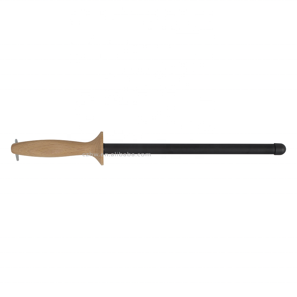 Shock-Absorbing Kitchen Ceramic Steel Knife Sharpener With Wood Handle