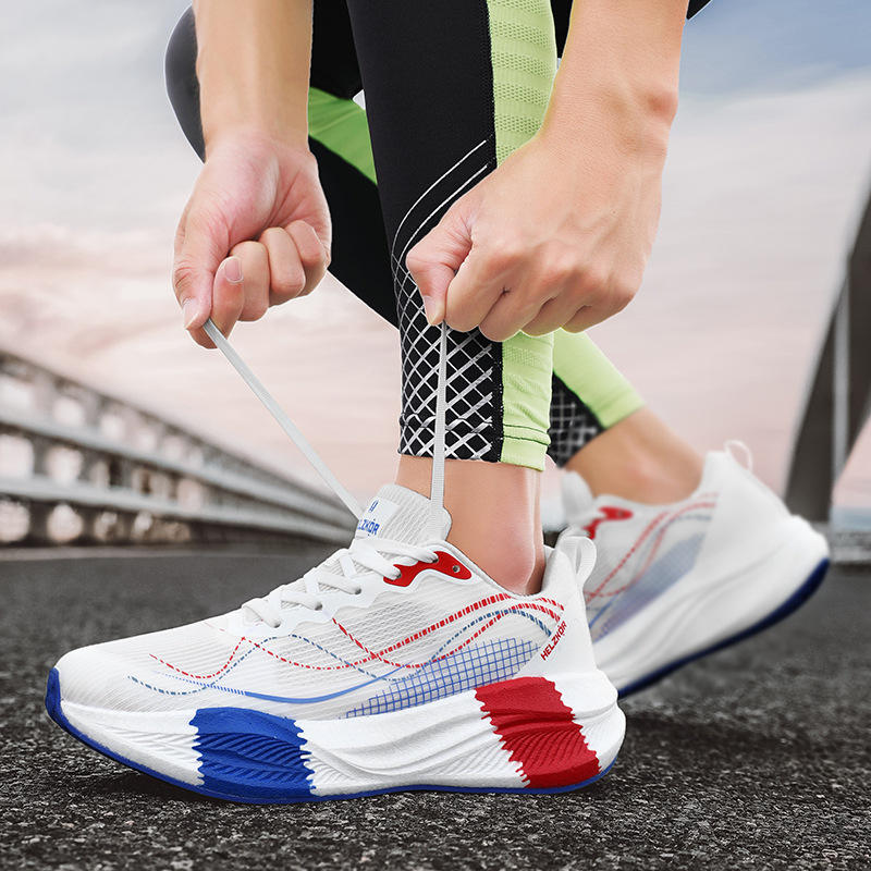 Shock-absorbing, wear-resistant, anti-slip outdoor sports shoes for men, thick sole, breathable, carbon plate running shoes