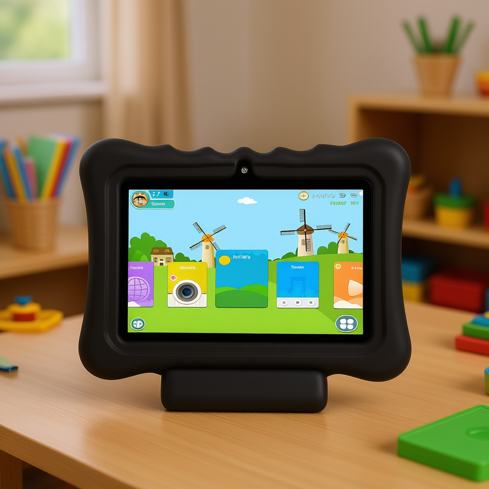 Kidzfun Tablet Case 7 Inch Shockproof Silicone With Stand For Kids Tablet Protection Black