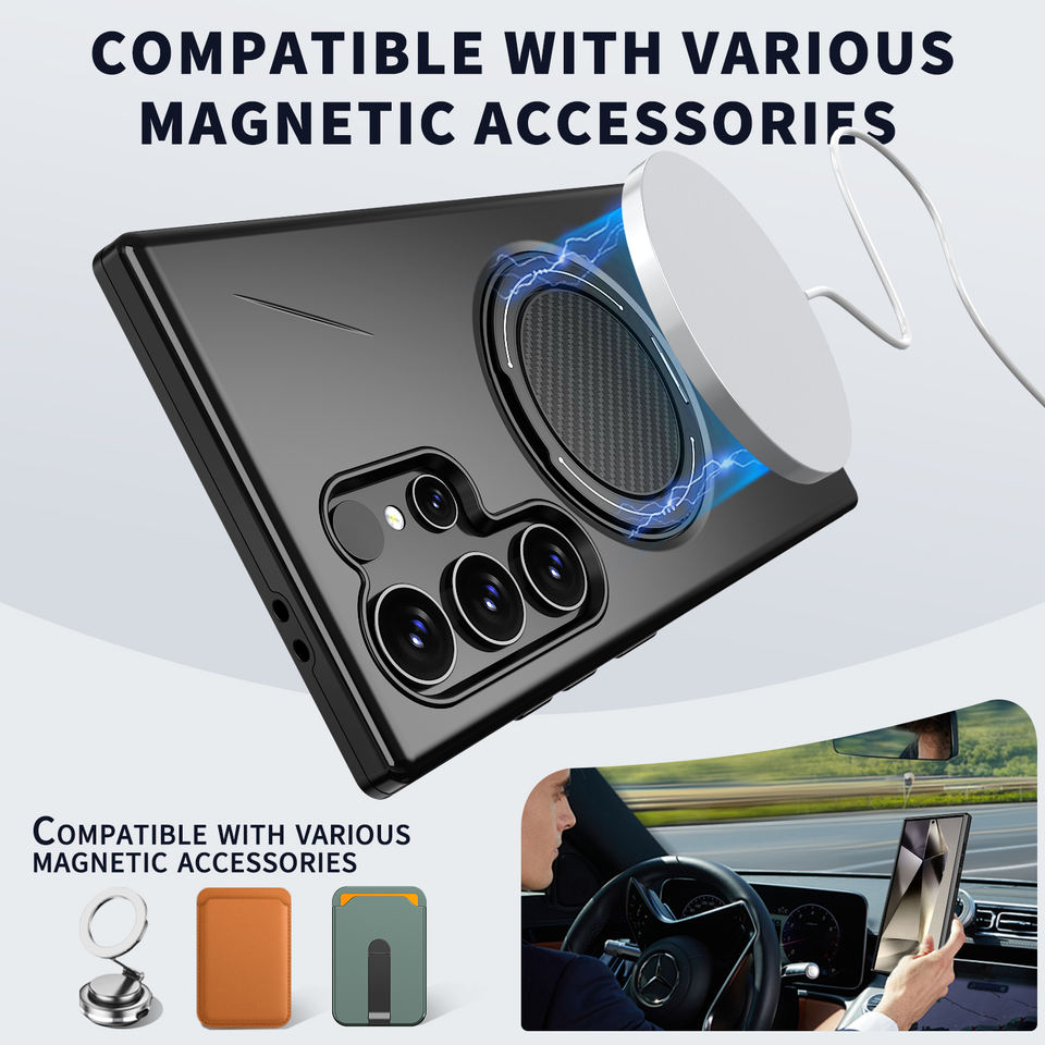 Shockproof Corner Magnetic TPU+PC+Metal Waterproof Armor Design Case for S23 S24 S25 S26 Ultra Supporting Wireless