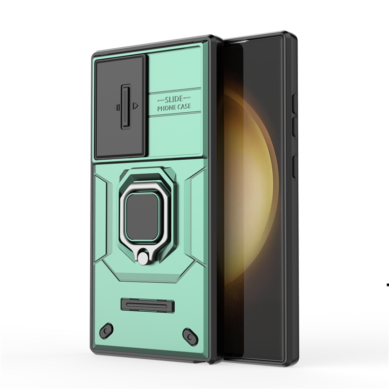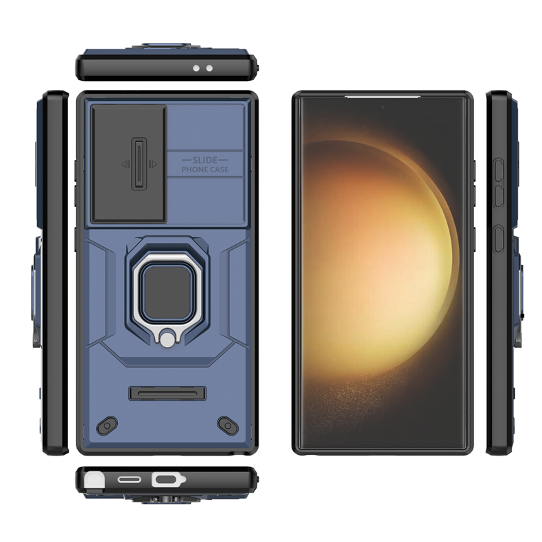 Shockproof Hard Plastic PC Protective Lens Cell Phone Cover with Kickstand Holder For Samsung Galaxy S24/S24 Ultra