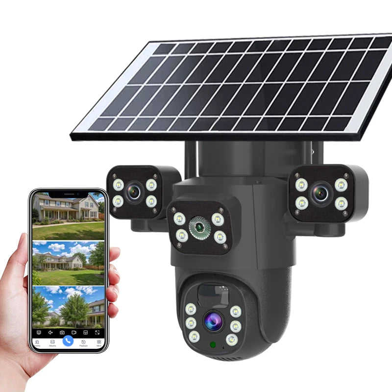 ShooCam New Arrival Eseecloud 4G Solar Panel Low Powered Wireless PTZ Camera 3 Lenses CCTV Security 4G Sim Card Solar Powered