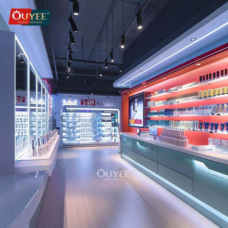 Shop Design Cosmetic Retail Display Perfume Bar Shop Display Pink Wig Display Beauty Supply Store Shelf