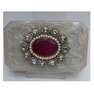 Shopper Choice Glossy High Quality Bride Bag Wedding Purse Green Colour Engraved Design Clutch With Chain Resin Crafts