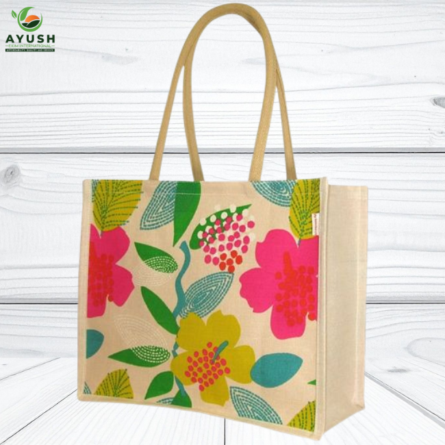 Shopping bags with logos custom printed made of jute & cotton with customizable options for markets & malls