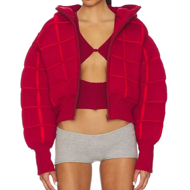 Short Hooded Quilted Windproof Breathable Boxy Winter Fleece Jacket wholesale OEm discount sale price