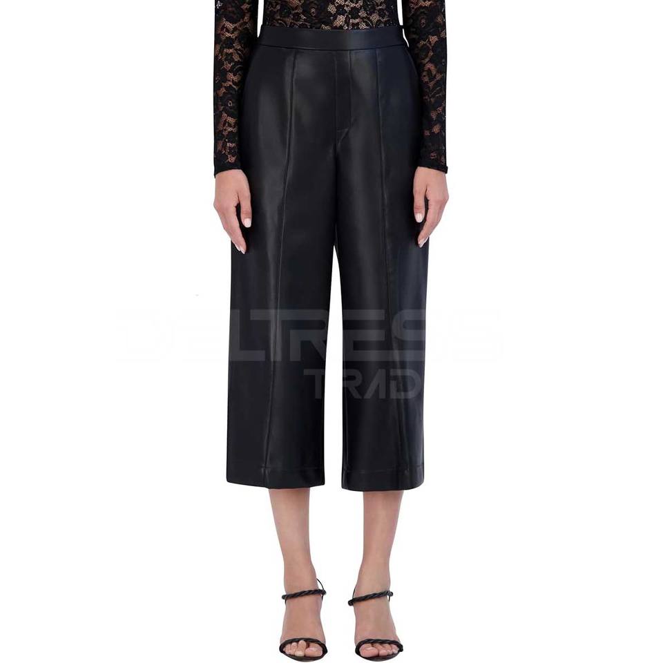 High Quality Customized Women's Short Length Leather Leggings Breathable High Waist Design Flat Front Style Winter Latest