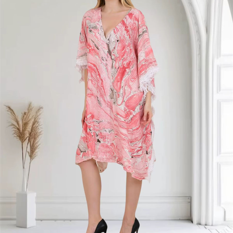 Short Sleeve Elegant and Sexy Vacation Wear Women Kaftan Caftan Party Lace Bikini Beach T Shirt Type Cover up Free Size Dress