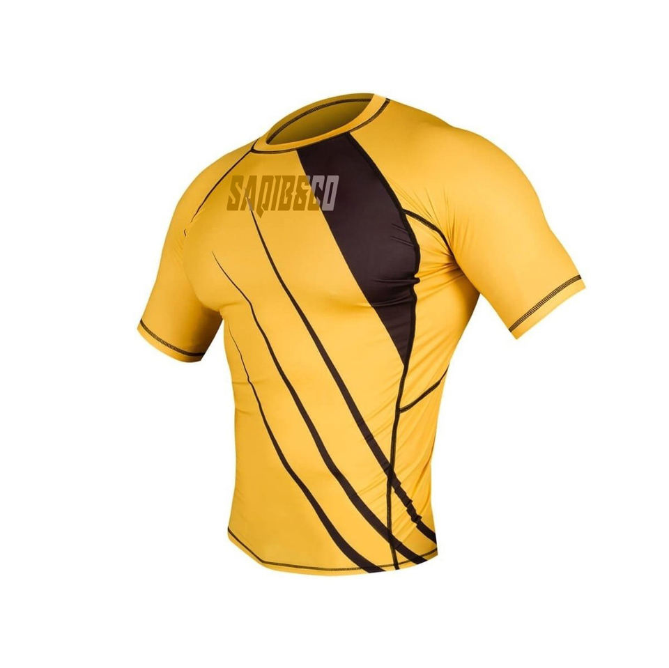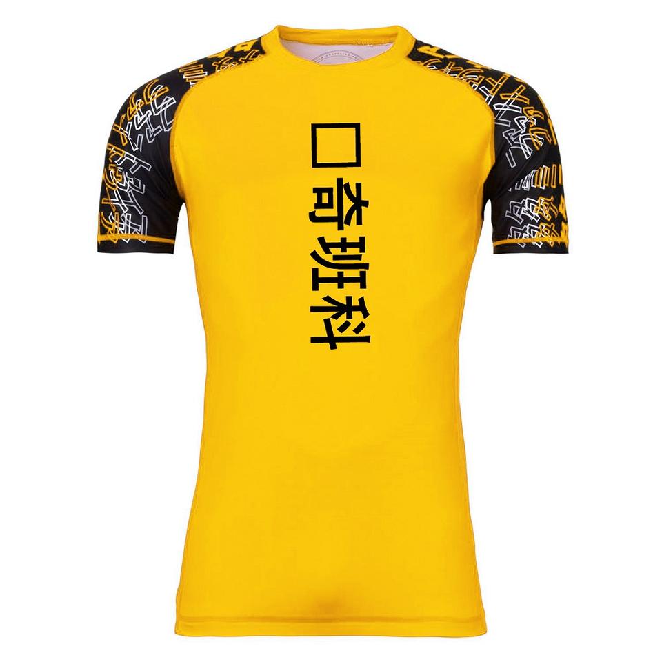 Short Sleeves Yellow Rash Guard, Hot Sale Training Rash Guard & Kids BJJ Training Rash Guards For Mens