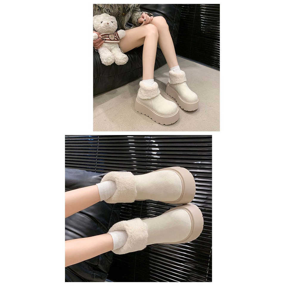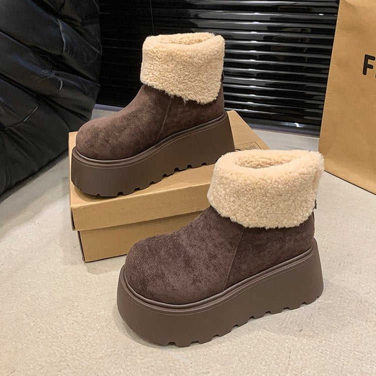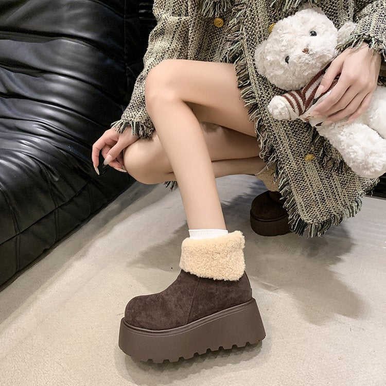 Short Suede Fashion Boots with Back Zipper High Heel (6-8cm) Round Toe Artificial Short Plush Rubber Platform Sole Snow Boots