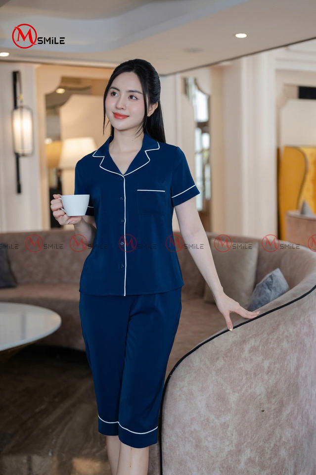Short shirt, Capri pants Pajamas Set Spring Summer Women Ice Silk Pijama Sleepwear Pyjamas Women home wear Top Factory