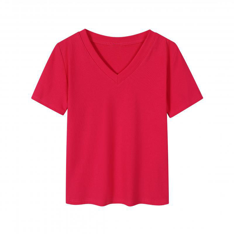 Short sleeve Cotton Made T Shirts Casual wear Breathable Women V-Neck T-Shirts Custom Blank Women V neck T shirts